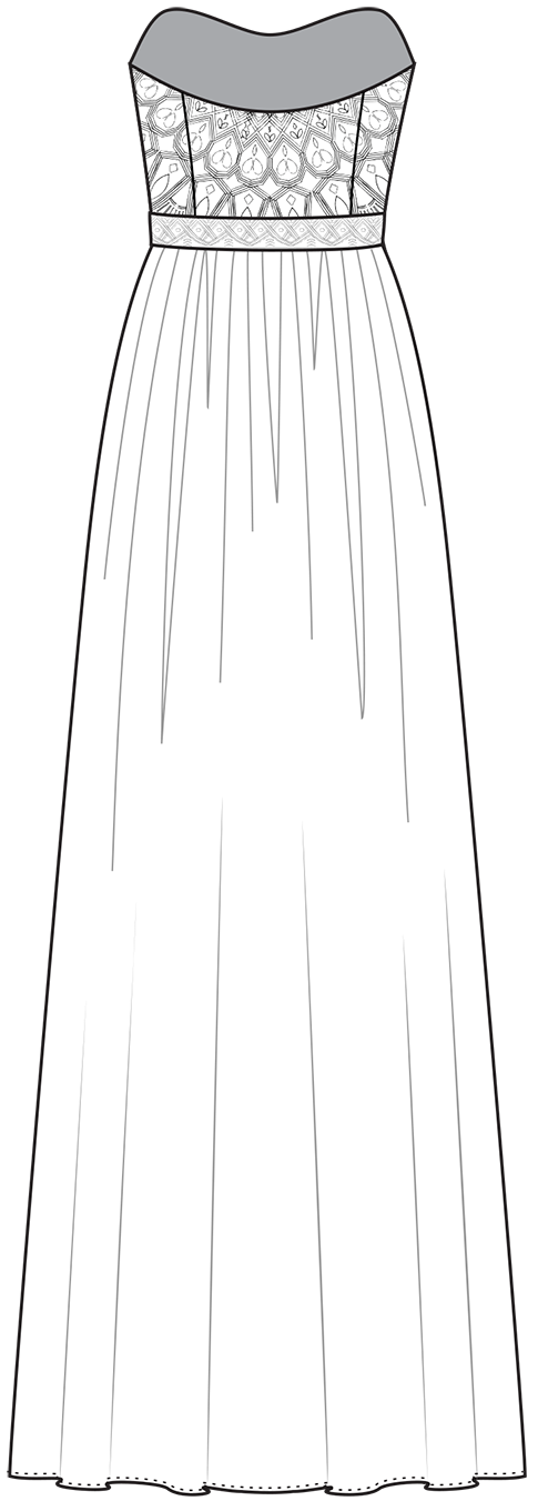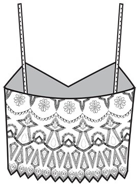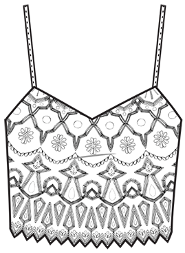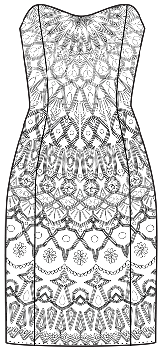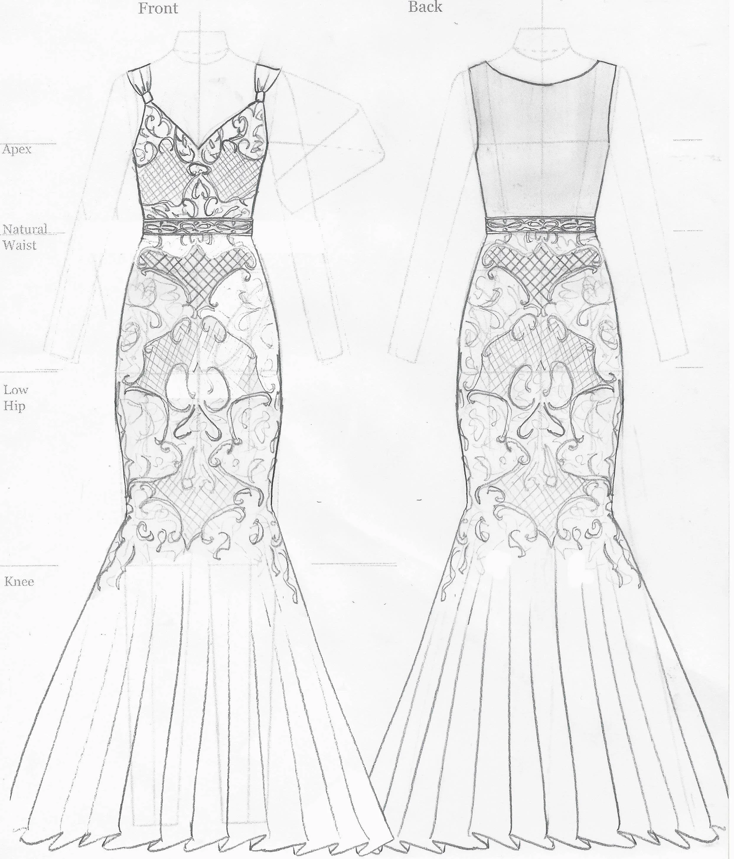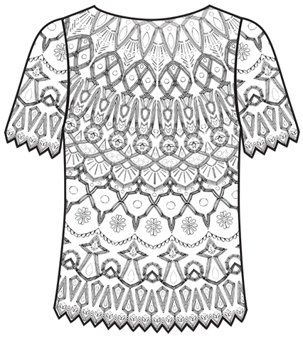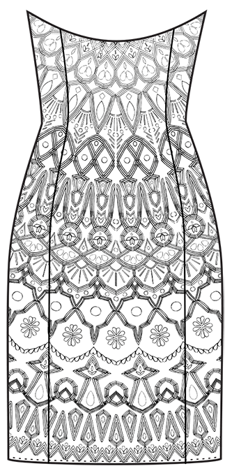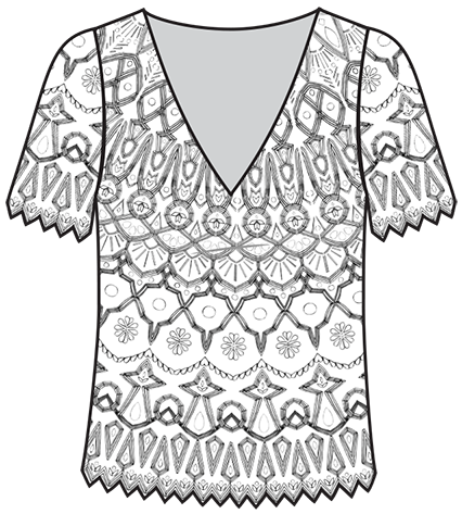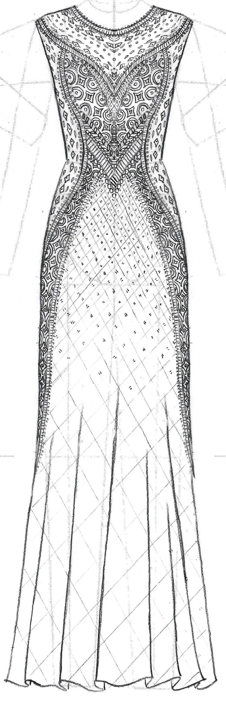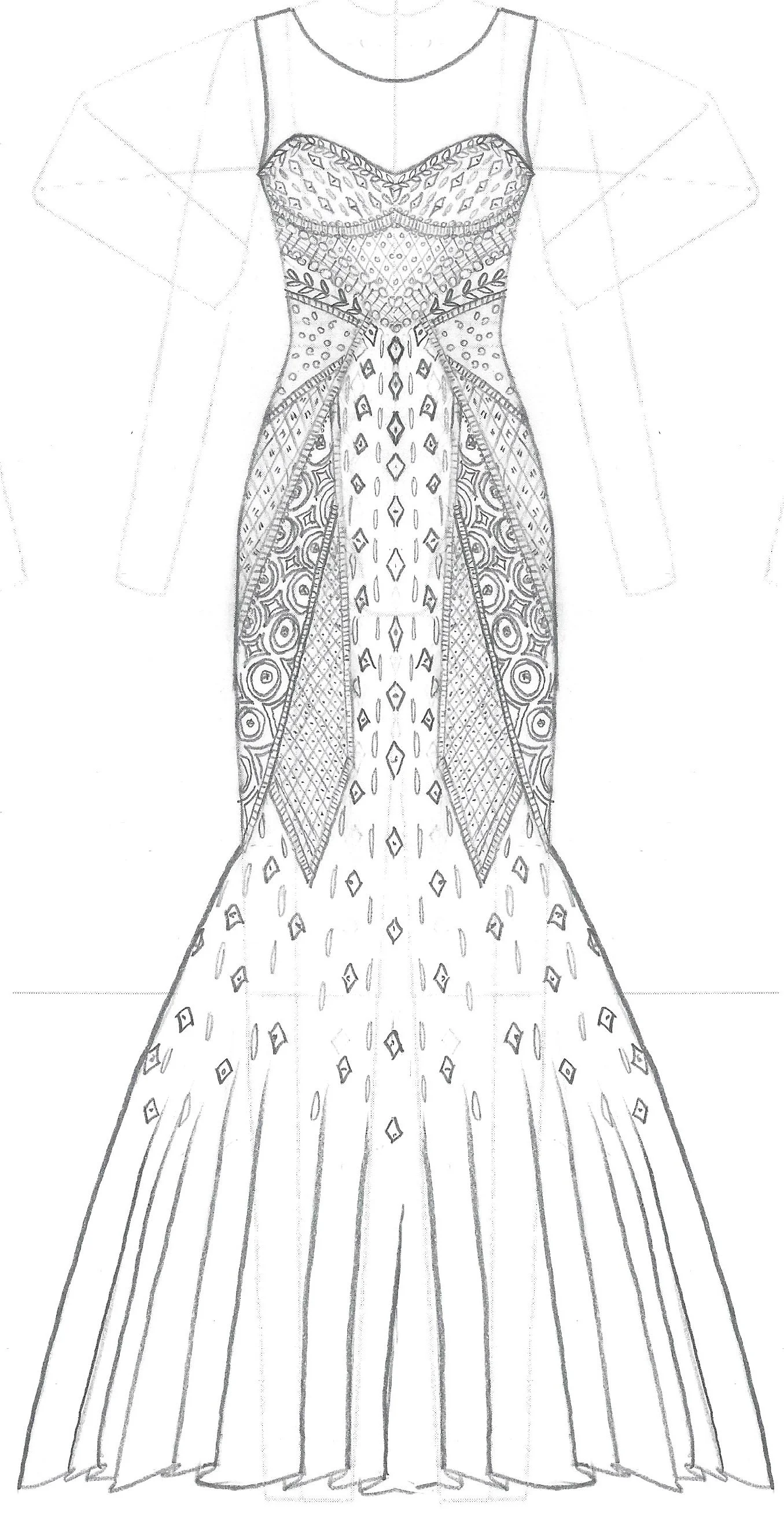 Hand-illustrated full scale embellishment pattern layout.